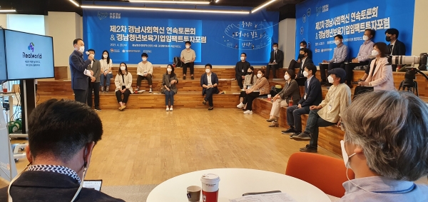 [국회의정저널] 경상남도는 28일 오후 2시 경남창조경제혁신센터에서 경남 로컬크리에이터와 관광벤처 활성화 방안을 주제로 ‘2021 제2차 경남사회혁신 연속토론회 및 제1회 경남임팩트투자포럼’을 개최했다.