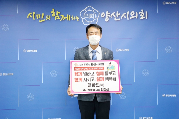 [국회의정저널] 양산시의회 임정섭 의장은‘저출산 극복 범국민 포함 릴레이 챌린지’에 지난 29일 동참했다.