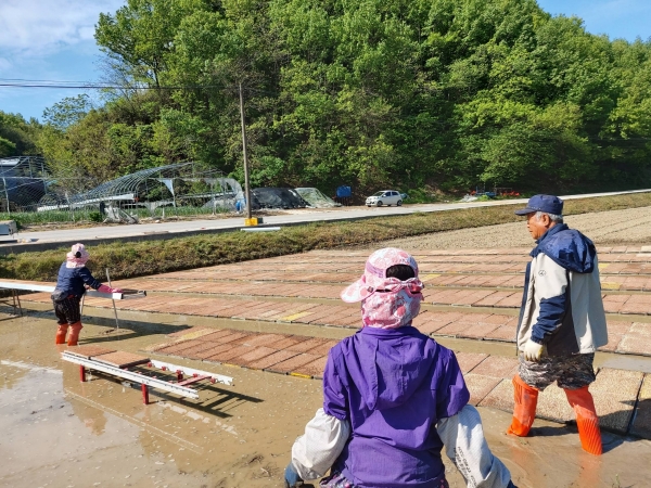 현재 진행되고 있는 못자리는 1모작 재배를 하는 벼로 농가별로 준비한 벼종자를 소독작업과 싹튀우기 과정을 거친 육묘상자를 못자리에 설치하고 30일정도의 육묘기간을 거쳐 모내기를 하게 된다.