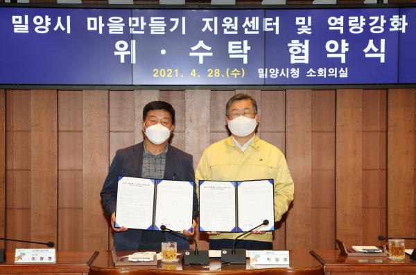 [국회의정저널] 밀양시는 일반농산어촌개발사업의 안정적이고 지속적인 추진과 성공적인 정착을 위해 지난 28일 밀양시청 소회의실에서 사단법인 밀양다움 및 로컬인재진흥회와 위·수탁 협약을 체결했다.