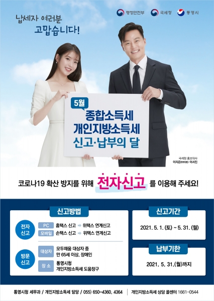 [국회의정저널] 통영시는 세무서에 국세와 함께 신고하던 개인지방소득세가 ‘20년부터 지자체 신고로 전환됨에 따라 5월 1일부터 5월 31일까지 종합소득세·개인지방소득세 합동도움창구를 설치·운영한다고 밝혔다.