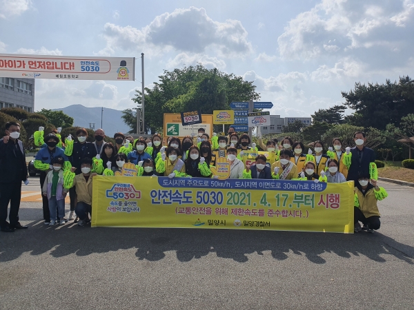 [국회의정저널] 밀양시는 초등학생들의 안전한 통학환경을 조성하기 위해 30일 예림초등학교 앞에서 밀양시, 밀양경찰서 밀양교육청, 녹색어머니회 등이 참여한 가운데 어린이보호구역 내 속도준수 및 주정차 금지 홍보 캠페인을 개최했다.