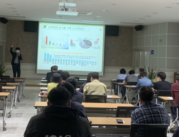 이번 푸드플랜 안전출하 교육은 지난 푸드플랜 기본교육에 이어 농산물 출하자격을 부여하는 푸드플랜 필수교육으로 코로나19 감염증 방역지침을 준수하면서 주요 거점 8개 읍면사무소에서 나누어 진행했다.