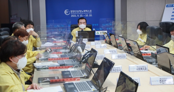 [국회의정저널] 함양군은 30일 오전 군청 재난상황실에서 서춘수 군수 주재로 각 국장, 부서장 등이 참석한 가운데 코로나19 대응 중앙-도-시군 영상회의 결과에 따른 특별방역대책 추진현황을 점검했다.