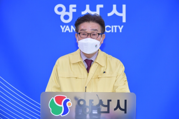 김일권 양산시장은 3일 오전 긴급브리핑을 열고 양산시 코로나19 관련 사회적 거리두기 조치사항에 대해 설명했다.