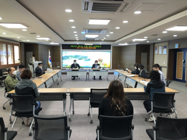 이날 수출회의에서는 업체간 수출분위기 동향 해외바이어 응대요령 비대면 온라인 수출상담회 일정 미국·호주 해외 판촉전 참여 aT수출분야 행정 지원사항 등을 주요 안건으로 다루었다.