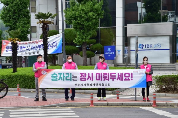 이번 캠페인은 협의회 소속 총 51개 단체 회장과 임원진 등 각 단체 대표자들이 참여했으며 관내 4개 권역 20개소에서 ‘진주시민 잠깐 멈춤’에 소속 회원들은 물론 전 시민들이 적극 동참해 줄 것을 호소했다.