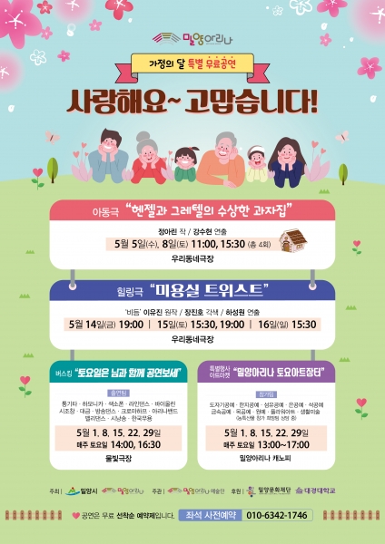 [국회의정저널] 밀양시는 오는 5월 한달간 밀양아리나에서 가족극 페스티벌을 개최한다고 밝혔다.