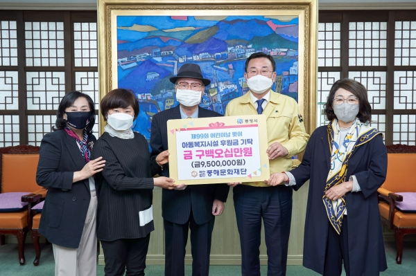 [국회의정저널] 재단법인 풍해문화재단에서는 지난 4. 30. 통영시를 방문해 제99회 어린이날을 맞이해 관내 아동복지시설 5개소에 후원금 950만원을 전달했다.