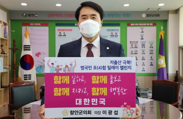 [국회의정저널] 함안군의회 이광섭 의장이 5월 4일 ‘저출산 극복 함께해요 범국민 포함 릴레이 챌린지’에 동참했다.