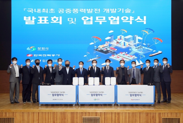 창원시는 4일 오후 2시 시민홀에서 한국전력-한국전기연구원과 상호협력 협약을 체결하고 미래형 신재생에너지로 주목받는 ‘공중 풍력발전’ 국산화 개발에 나선다.