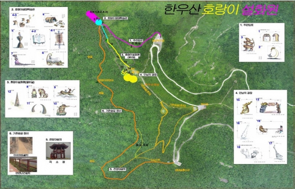 기존 한우산 호랑이, 도깨비 조형물 및 한우산 설화 등을 연계한 관광자원 개발을 통한 관광 인프라 구축을 위한 사업이다.