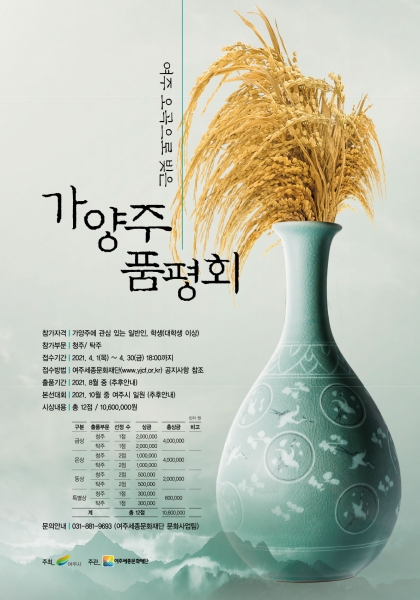 김진오 여주세종문화재단 이사장은“올해 첫 공모임에도 불구하고 많은 참가자가 신청한 만큼 전국에 있는 다양한 참가자들이 여주 쌀을 활용해 훌륭한 우리 술이 만들어 질 것을 기대한다”며 “공정한 선의의 경쟁을 통해 가양주 문화가 발전하고 여주의 특색을 살려 문화적 가치를 높이는데 지속적으로 노력하겠다”고 전했다.