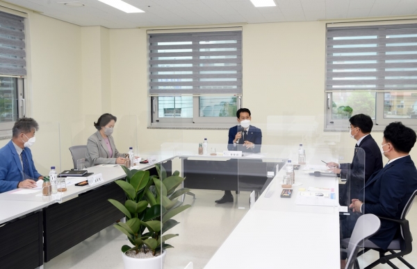이번 방문은 1월 4일 운영개시 후, 녹양종합사회복지관 운영의 전반적인 부분을 사전 확인차 진행했으며 황범순 부시장은 현재 지역사회 감염이 지속되는 상황에서 방역지침을 준수해 복지관 이용자들의 편의를 특별히 신경 써 달라고 당부했다.