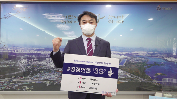 김 시장은 또, “하남시 언론과 의회, 시민과 함께 건강한 행정을 펼쳐나가도록 노력하겠다”고 다짐한 뒤 “‘STOP 가짜뉴스’, ‘STOP 사이비언론’, ‘START 공정언론’”이라며 ‘#공정언론 3S’캠페인의 슬로건을 외쳤다.