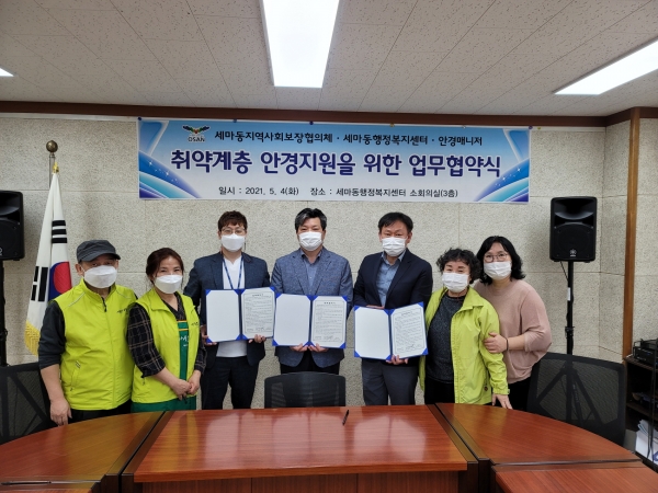 [국회의정저널] 오산시 세마동은 세마동 지역사회보장협의체, ‘안경매니져 세교점’과 지난 4일 저소득가구 무료안경지원에 대한 협약식을 가졌다고 6일 전했다.