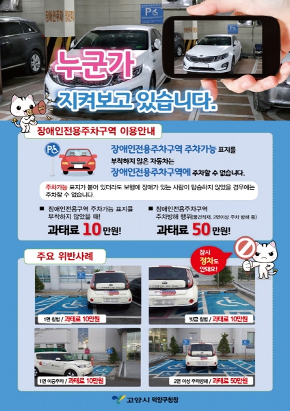 [국회의정저널] 고양시 덕양구이 이달부터 장애인 전용주차구역 이용 안내 전단지 배포 및 현수막 게첩을 통한 홍보 활동을 실시한다.