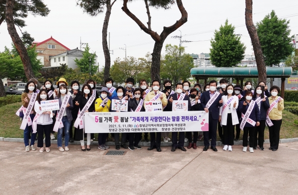 이날 행사에는 한정우 군수와 창녕군지역사회보장협의체 여성분과위원 30여명이 참여해 “가족에게 사랑한다는 말을 전하자”며 지역민에게 행복하고 건강한 가족 만들기에 동참해 줄 것을 호소했다.